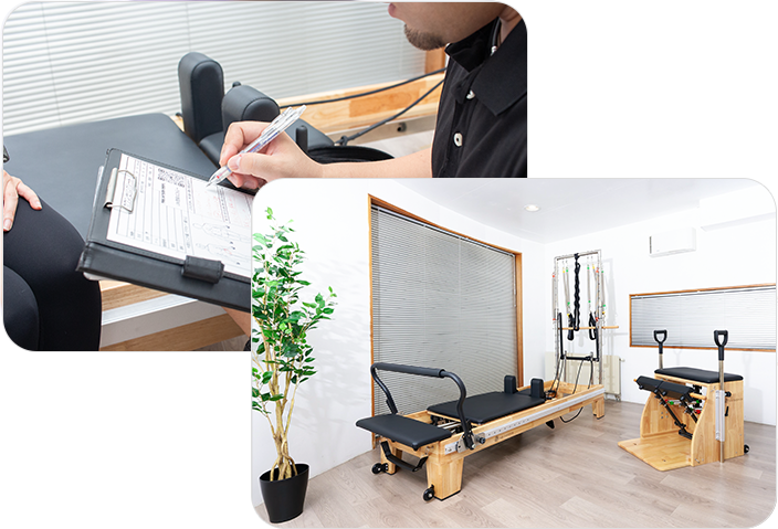 高品質のピラティスマシンが動きをサポートしてくれるから運動が苦手な方でも安心してメニューに取り組むことができます。マンツーマンでのレッスンなのでお身体の状況に合わせたメニューを提供します。